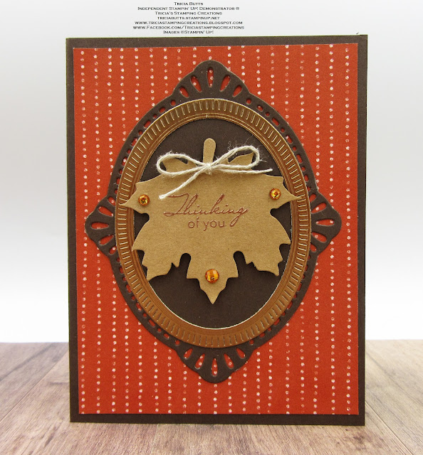 Today I thought I would share a clean and simple Thinking of You card design featuring the new Framed Florets Dies from the Fitting Florets Collection. I paired them with the beautiful Rustic Harvest Designer Series Paper to create a Fall themed card that would work well as a masculine card design. The leaf focal image is from the Leaf Label & Amber Gem Combo Pack, which is currently out of stock, but should hopefully be available later this month.