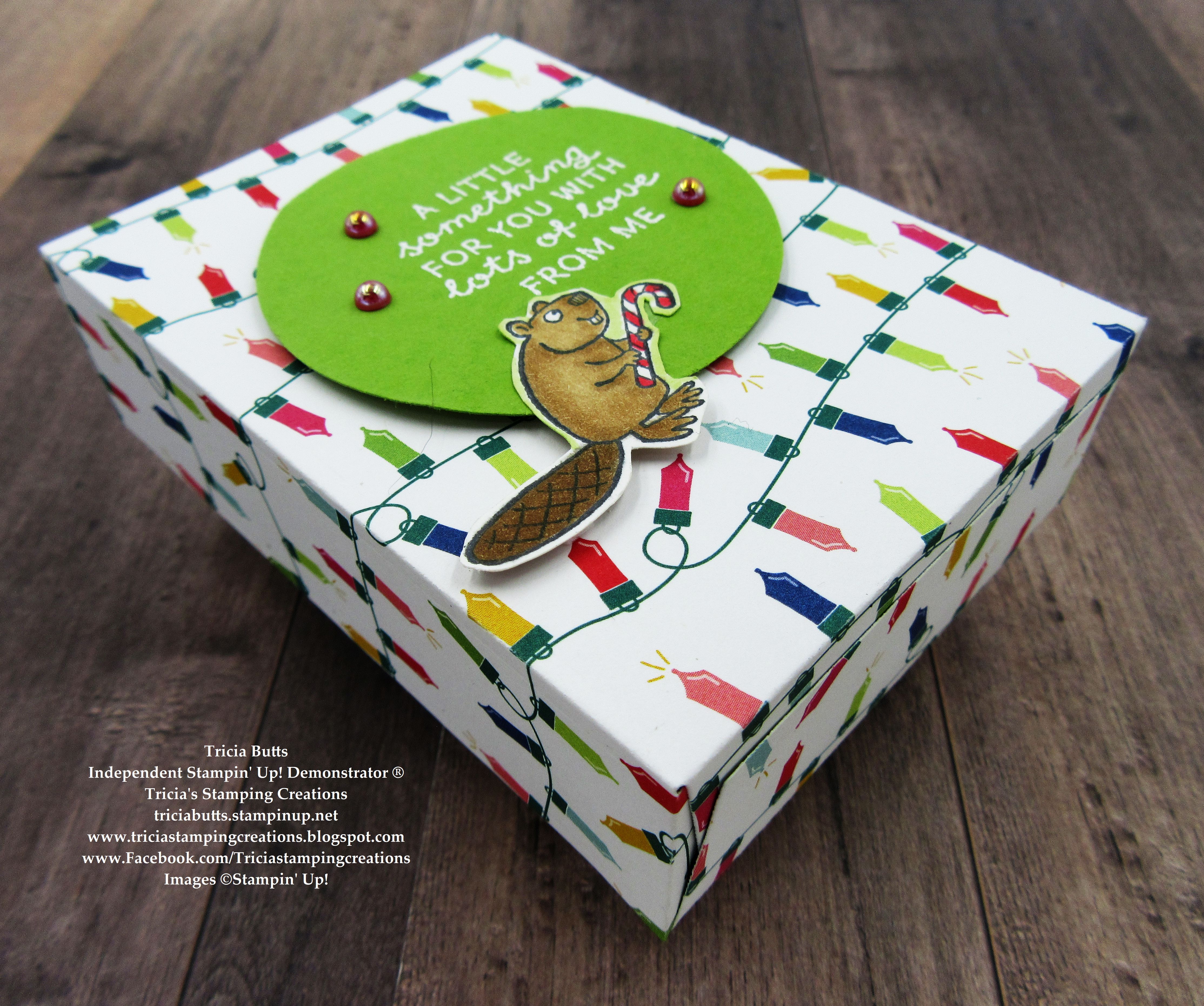 Today I wanted to share a fun treat holder idea that you can create as a quick gift for the holidays. The Tricks or Treats Dies is wonderful for creating a simple treat bag/box and I used a design from the Merry Bold & Bright Designer Series Paper to give it a fun and festive feel. You may remember that I used these dies to create bunch of these treat boxes for Halloween and they were a big hit with the kids who received them.