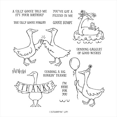 Today I thought I would share this cute Thank You card featuring the retiring Silly Goose stamp set and Glorious Gingham 6"x6" Designer Series Paper. I love creating clean and simple card designs and this layout is a great way to create fun cards with your stash of designer series paper. It's been a while since I have used Blueberry Bushel so I decided to show it some love with this monochromatic card design. You could easily create this card design with any of the colors in this designer series paper pack to create a variety of cards to add to your card stash.